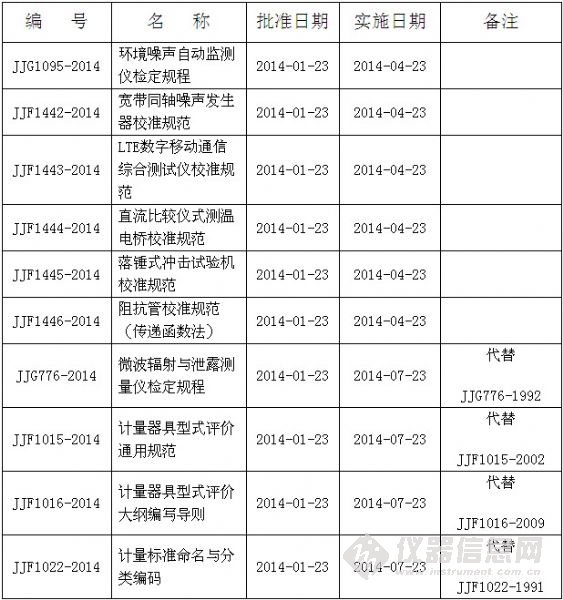 日前,質(zhì)檢總局關(guān)于發(fā)布JJG1095-2014《環(huán)境噪聲自動監(jiān)測儀檢定規(guī)程》等10個我國計量技術(shù)法規(guī)的公告。具體詳情如下: 質(zhì)檢總局關(guān)于發(fā)布JJG1095-2014《環(huán)境噪聲自動監(jiān)測儀檢定規(guī)程》等10個我國計量技術(shù)法規(guī)的公告 根據(jù)有關(guān)規(guī)定,現(xiàn)批準JJF1445-2014《落錘式?jīng)_擊試驗機校準規(guī)范》等10個我國計量技術(shù)法規(guī)發(fā)布實施。JJF1445-2014《落錘式?jīng)_擊試驗機校準規(guī)范》自2014年4月23日實施。